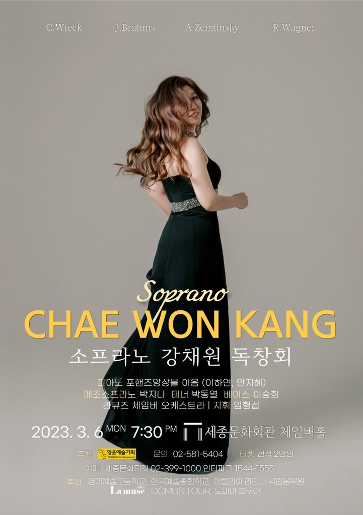▲ 소프라노 강채원 독창회 = 소프라노 강채원이 오는 3월 6일 세종문화회관 체임버홀에서 독창회를 연다.