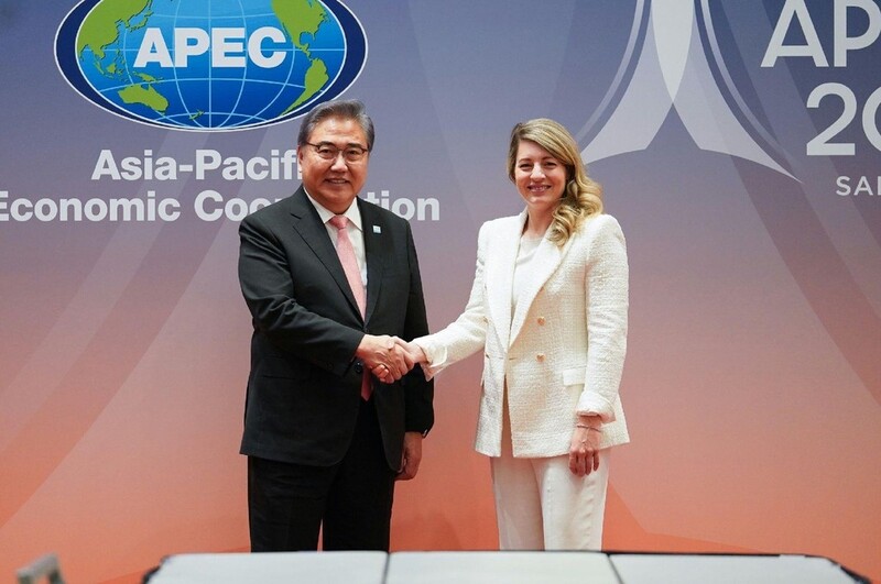 Park met with Canadian Foreign Minister Melanie Joly in San Francisco, the venue for the APEC summit, on Wednesday (local time) and discussed the follow-up steps after the two summit talks between President Yoon Suk Yeol and Canadian Prime Minister Justin Trudeau in September last year and May this year.