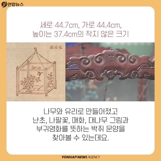 나무와 유리로 만들어졌고 난초, 나팔꽃, 매화, 대나무 그림과 부귀영화를 뜻하는 박쥐 문양을 찾아볼 수 있는데요.