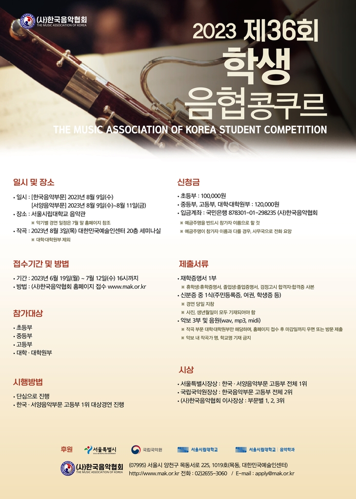 [게시판] 한국음악협회, 제36회 학생음협콩쿠르 참가자 모집