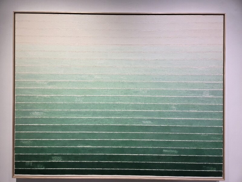 이번에 선보인 연작 '흐름'(Flow)은 한지 위에 염색한 종이를 길게 잘라 붙여 자연스러운 그러데이션을 구현했다. 성연화가 본 자연 풍경에서 영감을 얻어 추상 화면을 구상했다.