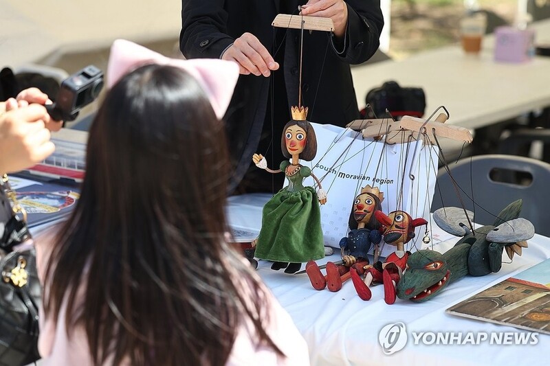 | ▲ 어린이날 하루 앞두고 세계놀이 구경 (서울=연합뉴스) 서대연 기자 = 어린이날을 하루 앞둔 4일 서울 종로구 국립민속박물관에서 열린 '세계로 가는 놀이기차' 행사에서 한 어린이가 체코 마리오네트 인형놀이를 관람하고 있다. 2025.5.4 dwise@yna.co.kr |
