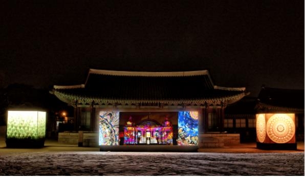(서울=연합뉴스) 강종훈 기자 = 국립현대미술관 서울관 뒤편의 조선 시대 관청 종친부 건물이 화려한 미디어아트와 만났다.
