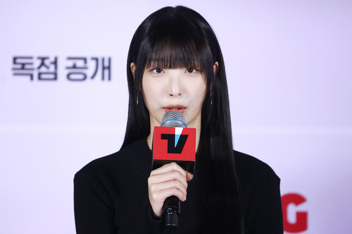 South Korean actress Ryu Da-in, who stars in the new drama "Pyramid game," an original series by TVing, speaks during a publicity event in Seoul on Feb. 26, 2024. The first episode of the series will be available on Feb. 29. (Yonhap)