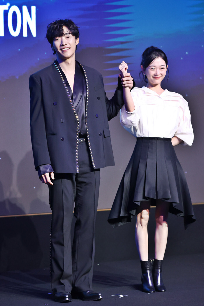 South Korean actor Woo Do-hwan and actress Lee Yoo-mi, who star in "Mr. Plankton," an original series by Netflix, pose for a photo during a publicity event in Seoul on Nov. 4, 2024. The 10-episode series will be released worldwide on Nov. 8. (Yonhap)