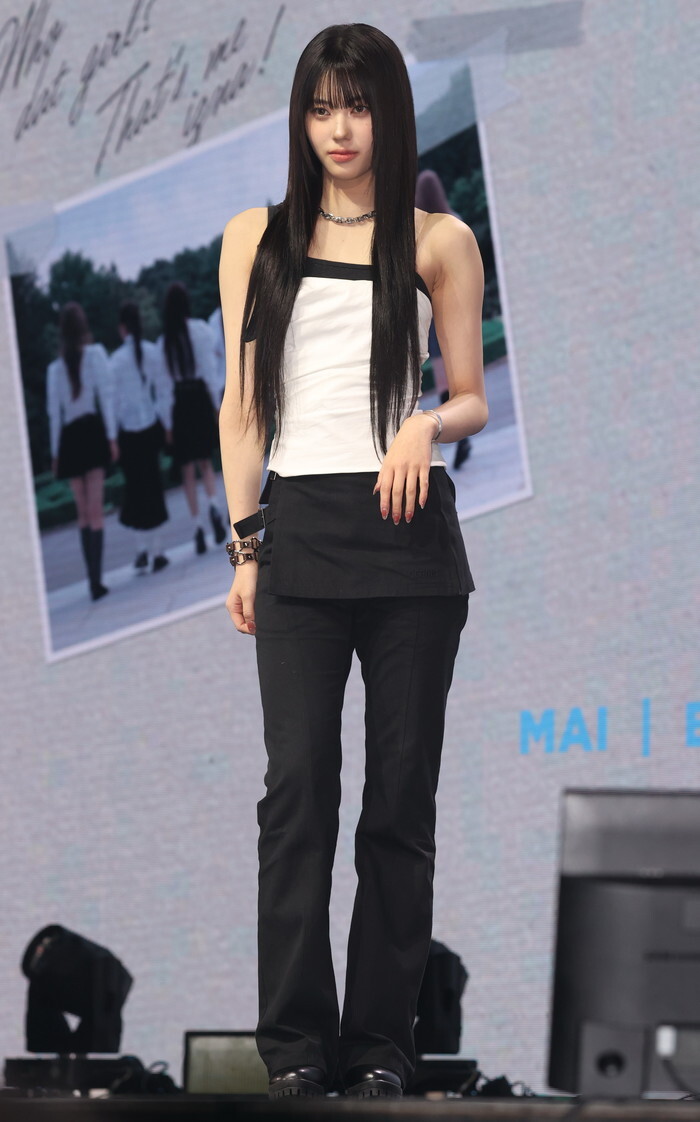 Koko, a member of South Korean girl group Izna, poses for a photo during a showcase in Seoul on Nov. 25, 2024, to promote the release of the group's first mini album "N/a." (Yonhap)