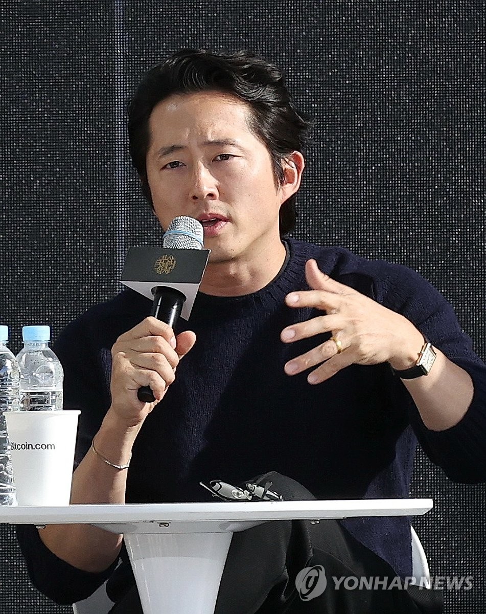 ▲ 부산국제영화제 참석한 스티븐 연 배우 스티븐 연이 작년 10월 5일 부산국제영화제(BIFF) 개막 두 번째 날 부산 해운대구 영화의전당 야외무대에서 열린 오픈토크 '코리안 아메리칸 특별전: 코리안 디아스포라'에서 질문에 답하는 모습. [연합뉴스 자료사진]