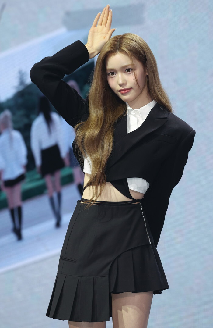 Jeong Sae-bi, a member of South Korean girl group Izna, poses for a photo during a showcase in Seoul on Nov. 25, 2024, to promote the release of the group's first mini album "N/a." (Yonhap)
