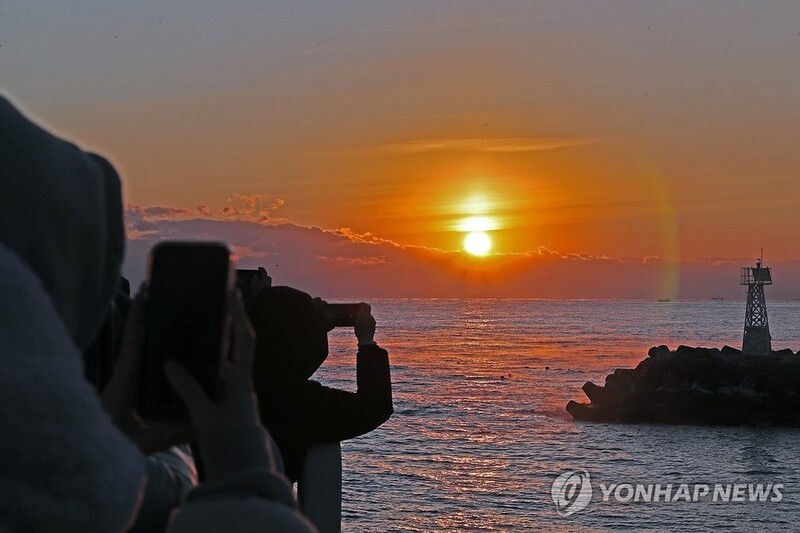 | ▲ 병오년 첫 일출 (강원 고성=연합뉴스) 류호준 기자 = 2026년 병오년(丙午年) 새해 첫날인 1일 강원 고성군 토성면 봉포해변에서 시민과 관광객들이 일출을 구경하고 있다. 2026.1.1 ryu@yna.co.kr |