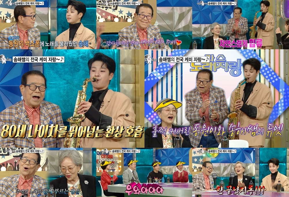 송해는 배우 김영옥, 박소담, 가수 정동원, 그룹 마마무의 솔라가 출연하는 24일 방송에 특별 게스트로 나서 정동원의 색소폰 연주에 맞춰 노래를 부르고, 배우 김영옥과의 무반주 듀엣 무대를 선보일 예정이다.