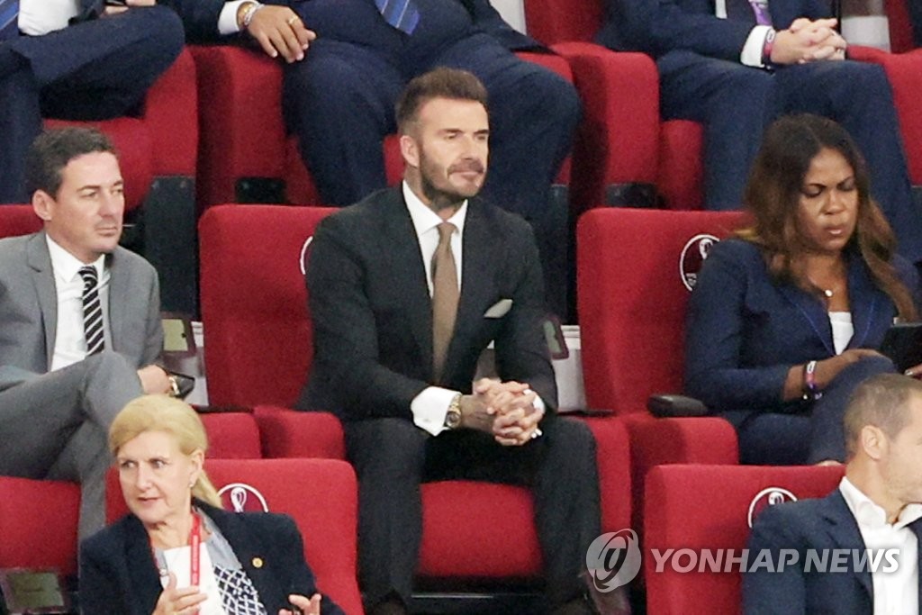 | ▲ 잉글랜드 응원 나선 베컴 (도하=연합뉴스) 김주성 기자 = 21일 오후(현지시간) 카타르 도하의 칼리파 인터내셔널 스타디움에서 열린 2022 카타르 월드컵 조별리그 B조 1차전 잉글랜드 대 이란 경기. '슈퍼스타' 데이비드 베컴이 관중석에서 잉글랜드 대표팀을 응원하고 있다. 2022.11.22 utzza@yna.co.kr |
