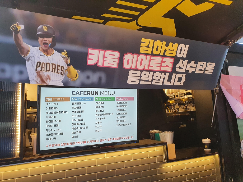 | ▲ 김하성이 키움 히어로즈 선수들을 위해 보낸 커피차 (수원=연합뉴스) 하남직 기자 = 준플레이오프 3차전이 열리는 19일 수원케이티위즈파크에 도착한 커피차. 샌디에이고 김하성이 키움 히어로즈 동료들을 위해 보냈다. |