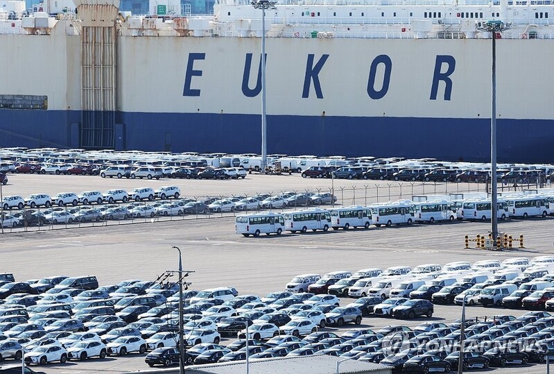 | ▲ Cars ready to be shipped overseas are seen parked at a port in Pyeongtaek, some 60 kilometers south of Seoul, on Jan. 1, 2026. (Yonhap) |