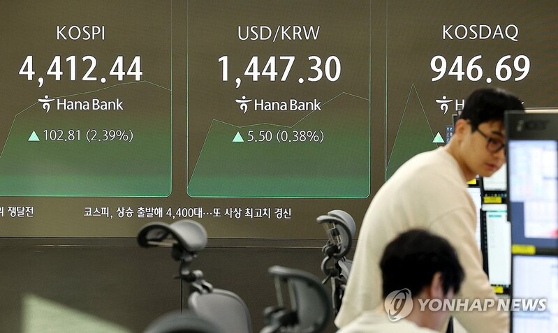 The benchmark Korea Composite Stock Price Index (KOSPI) rose 93.31 points, or 2.17 percent, to 4,402.94 in the first 15 minutes of trading.