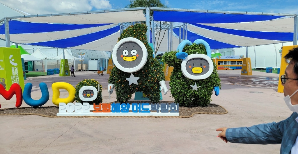 (보령=연합뉴스) 조성민 기자 = 김태흠 충남지사가 개막을 열흘 앞둔 2022 보령해양머드박람회장을 찾아 준비상황을 점검했다.