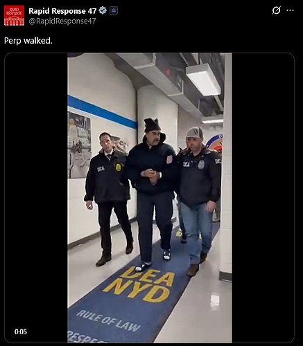 | ▲ Venezuelan leader Nicolas Maduro (C) is escorted through a hallway inside the U.S. Drug Enforcement Administration New York office building on Jan. 4, 2026, in this photo captured from the White House Rapid Response X account. (PHOTO NOT FOR SALE) (Yonhap) |