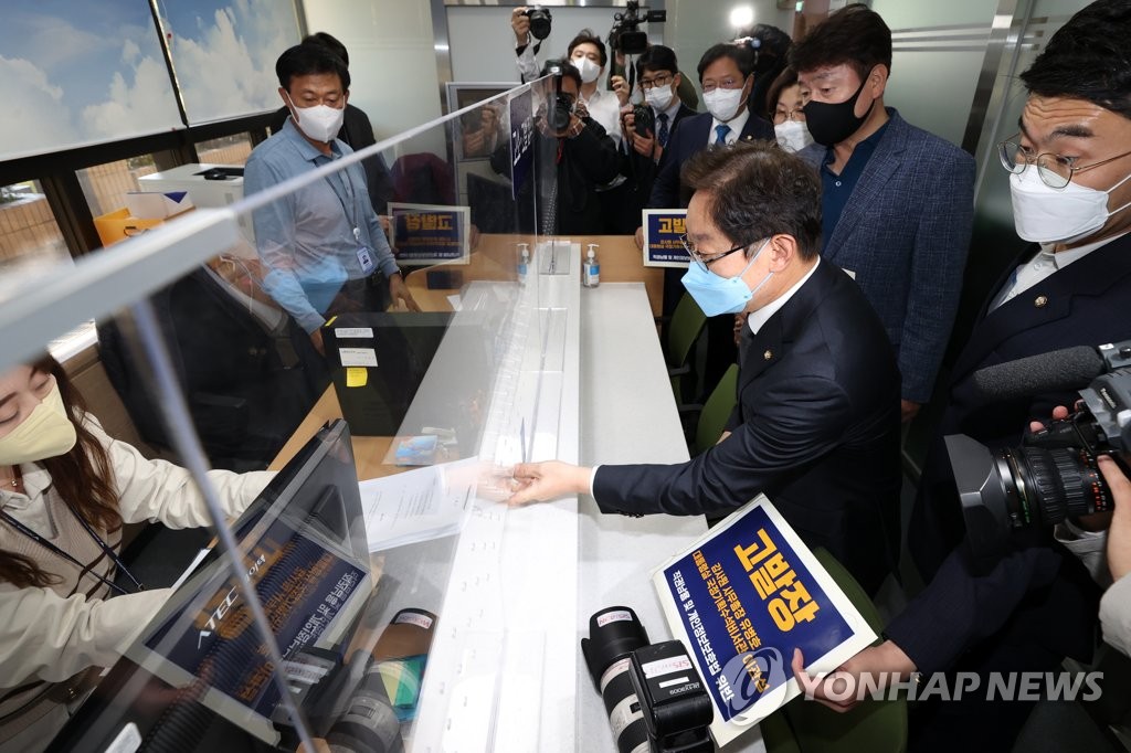 | ▲ Rep. Park Beom-kye of the main opposition Democratic Party files a complaint against officials of the state audit agency at the Corruption Investigation Office for High-ranking Officials headquarters in Gwacheon, just south of Seoul, on Oct. 12, 2022. (Pool photo) (Yonhap) |