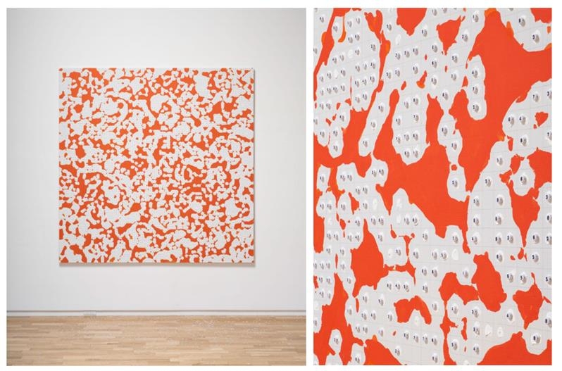 | ▲ 미야지마 다쓰오, 'Numerical Beads Painting - 003', 2022(왼쪽)과 세부 모습. [갤러리바톤 제공. 재판매 및 DB 금지] |