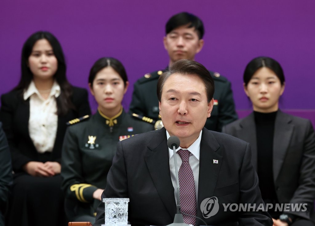 Yoon made the remark at a meeting held to check progress on his administration's foreign policy and national security goals, with 128 people in attendance, including 97 members of the public and the ministers for foreign affairs, unification, defense and veterans affairs.