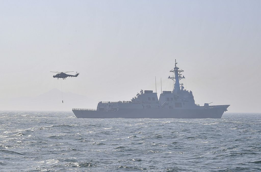 A maritime helicopter then flew in close to the 7,600-ton Aegis-equipped warship, ROKS Sejong the Great, and descended a cable-linked sonar system into the waters off the country's southeastern coast to pinpoint the enemy vessel.