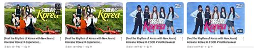 (서울=연합뉴스) 차민지 기자 = 문화체육관광부와 한국관광공사가 뉴진스와 함께 만든 '한국관광 해외광고' 영상이 공개 11일 만에 유튜브 합산 조회수 3천만회를 기록했다.