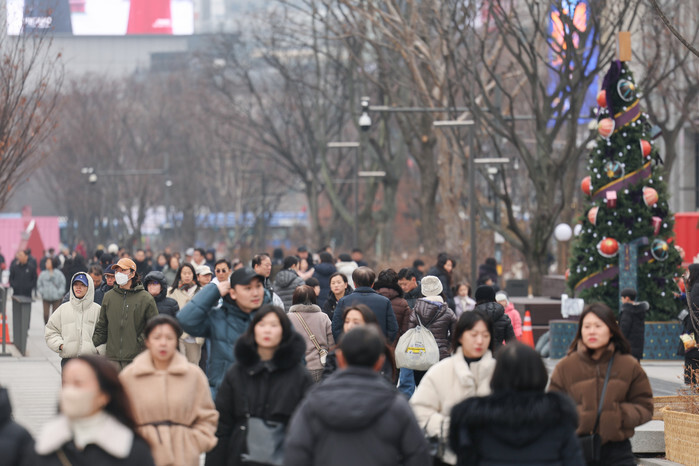Gwanghwamun Square in central Seoul is filled with people on the last weekend before the new year on Dec. 28, 2025. (Yonhap)