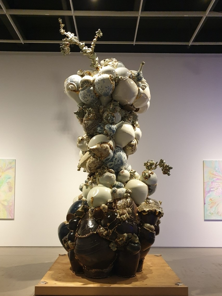 이 작품은 깨진 도자 조각을 모아 에폭시 접착제로 이어 붙이고 틈 사이에 금박을 입혀 새로운 형태로 창조하는 작가의 대표작 '번역된 도자기' 연작 중 하나다.