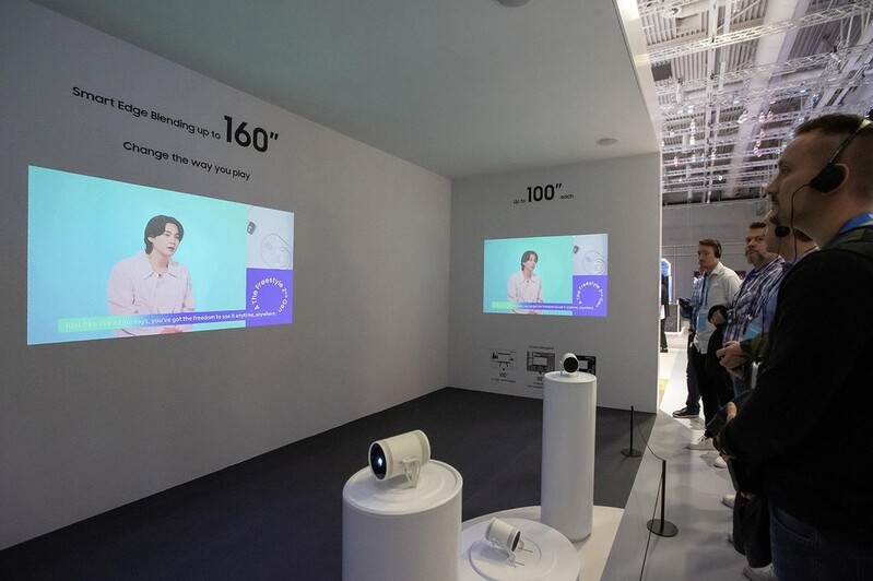 | ▲ 1일(현지시간) 독일 베를린에서 열린 'IFA 2023' 삼성전자 부스를 방문한 관람객이 방탄소년단(BTS) 슈가가 출연한 '더 프리스타일' 2세대 소개 영상을 보는 모습.[삼성전자 제공] |