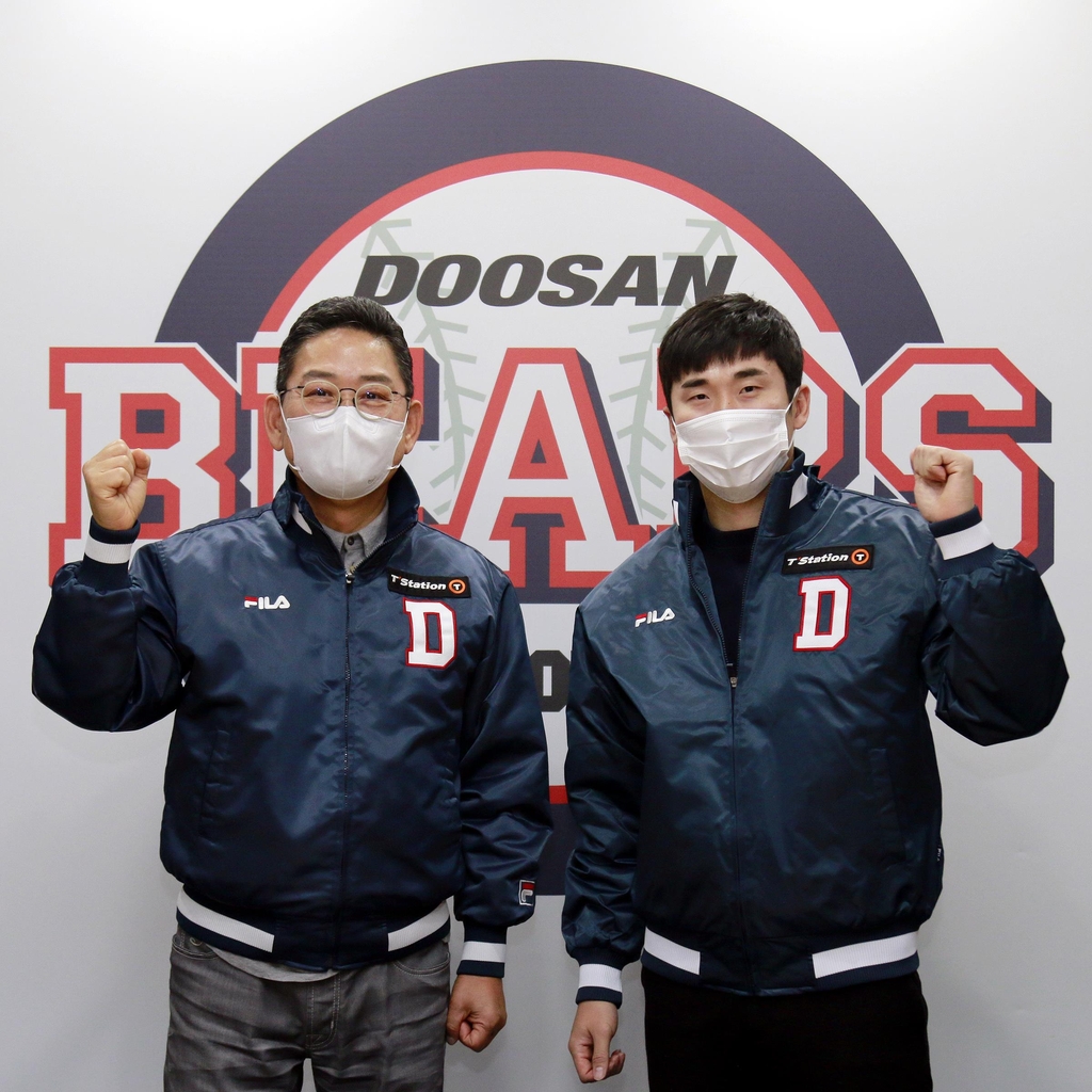 | ▲ 허경민과 전풍 사장 (서울=연합뉴스) FA 최대어 허경민(오른쪽)이 10일 서울시 잠실구장에서 두산 베어스와 7년 최대 85억원의 계약을 한 뒤 전풍 대표이사와 기념 촬영을 하고 있다. [두산 베어스 제공. 재판매 및 DB금지] |