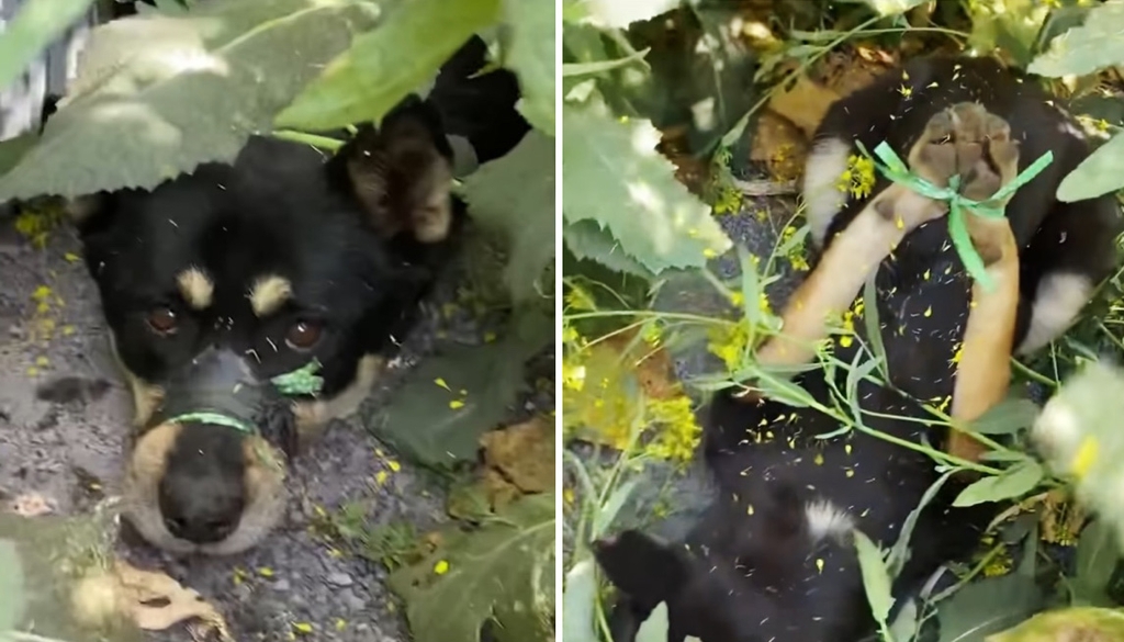 유기견을 결박한 노끈 위에는 심지어 테이프까지 감겨있었으며, 앞발은 몸체 뒤로 꺾인 상태였다.