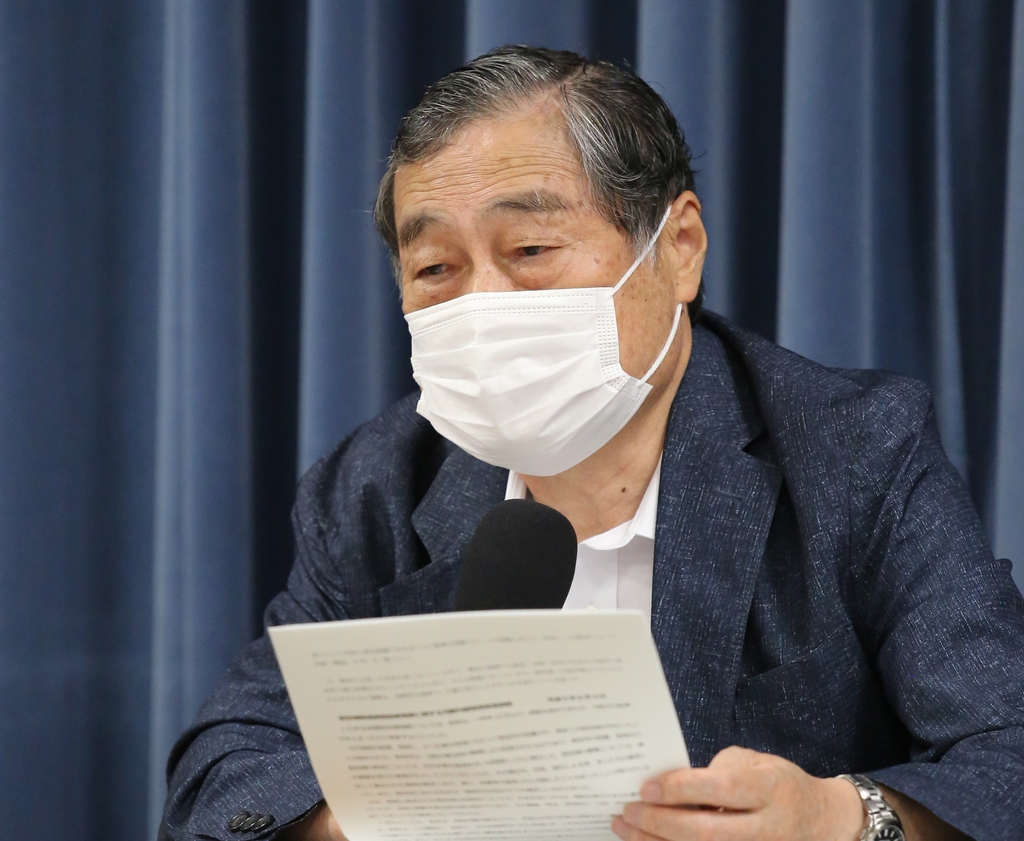 | ▲ 교과서 개입 철회 촉구하는 일본 시민단체 대표 (도쿄=연합뉴스) 이세원 특파원 = 스즈키 도시오 '어린이와 교과서 전국네트21' 대표위원이 12일 오후 일본 문부과학성에서 열린 기자회견에서 일본 정부의 교과서 개입 문제에 관해 발언하고 있다. 2022.7.12 |