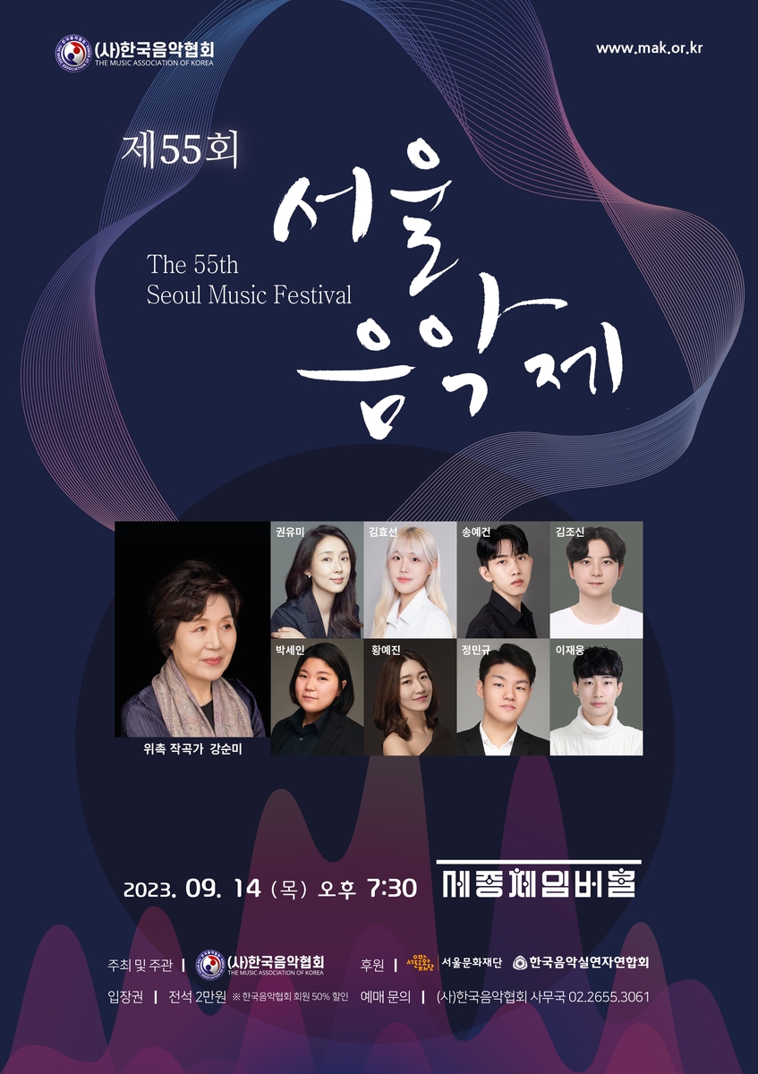▲ 한국음악협회, 제55회 서울음악제 = 사단법인 한국음악협회는 오는 9월 14일 서울 세종문화회관 체임버홀에서 제55회 서울음악제를 연다.