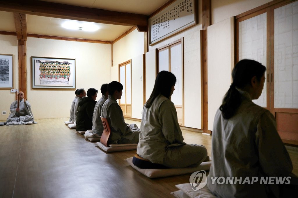 ▲ 좌선하는 템플스테이 참가자 [연합뉴스 자료사진]