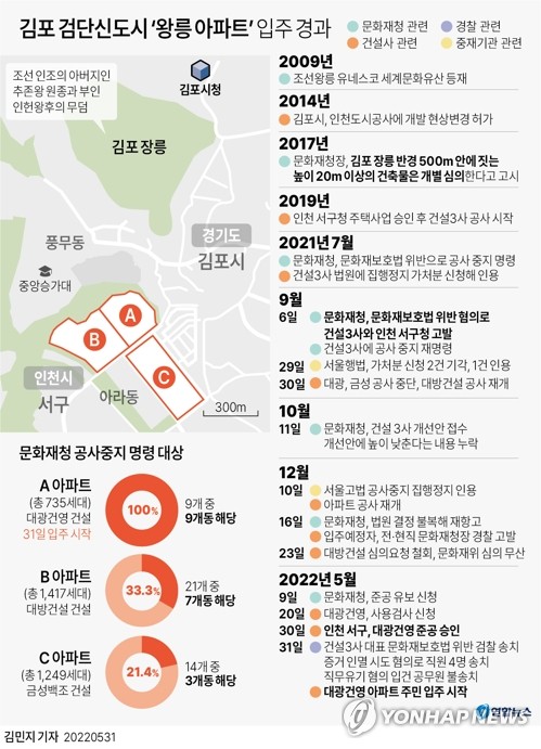 ▲ [그래픽] 김포 검단신도시 '왕릉 아파트' 입주 경과 (서울=연합뉴스) 김민지 기자 = minfo@yna.co.kr 트위터 @yonhap_graphics 페이스북 tuney.kr/LeYN1