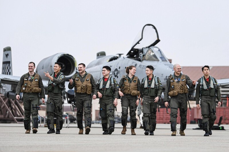 | ▲ South Korean and U.S. Air Force pilots walk side by side at Osan Air Base, south of Seoul, after completing their joint training, in this file photo provided by the South Korean Air Force on March 9, 2023. (PHOTO NOT FOR SALE) (Yonhap) |