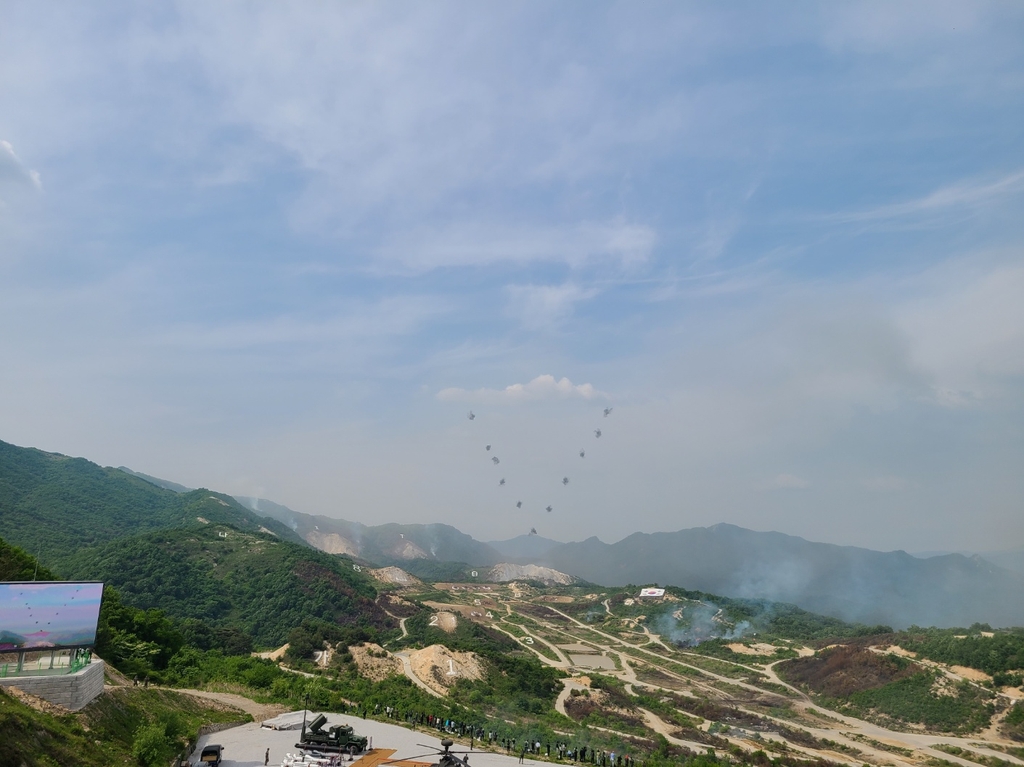 F-35As, Apache helicopters, multiple rocket launchers and other formidable assets were deployed to underscore their firepower. South Korea's high-tech Army TIGER unit also appeared for fire missions, while the MUM-T platform featuring Apache helicopters and cutting-edge drones moved in for air support in collaboration with Air Force participants.