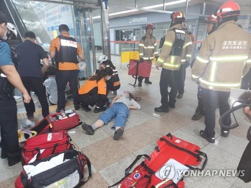 The accident occurred around 8:20 a.m. when the upwards escalator leading to exit 2 of Sunae Station on the Bundang Line reversed suddenly and went backward for several seconds, according to police and fire authorities.