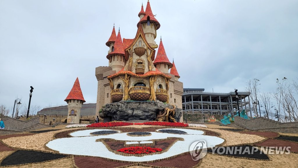 | ▲ 부산 오시리아 테마파크 롯데월드 (부산=연합뉴스) 조정호 기자 = 17일 부산 기장군 오시리아 관광단지 테마파크 부지에 들어선 롯데월드 어드벤처 부산에서 공식 개관(3월 31일)을 앞두고 각종 시설물을 공개했다. 15만8천㎡(4만8천여 평) 규모인 롯데월드 부산은 '동화 속 왕국'을 주제로 6개 테마 구역과 17종 탑승·관람 시설을 선보인다. 2022.3.17 ccho@yna.co.kr |