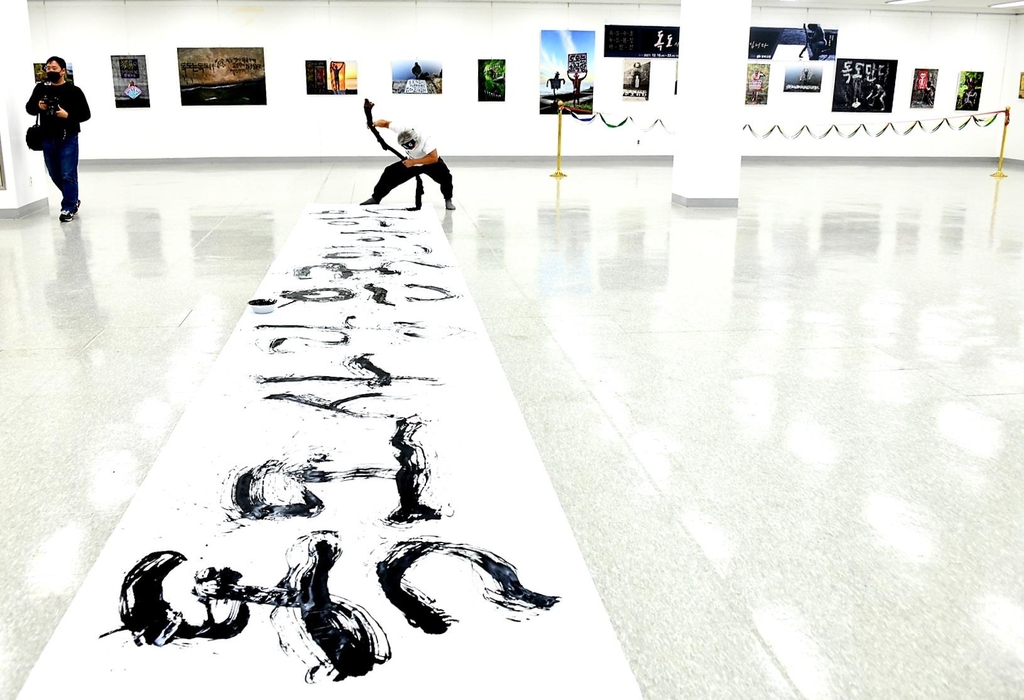 (안동=연합뉴스) 손대성 기자 = 서예 행위예술가 김동욱 씨와 사진작가 김하영 씨는 22일까지 경북도청 동락관 제2전시실에서 '독도수호 누드 몸짓 사진전'을 개최한다고 16일 밝혔다.