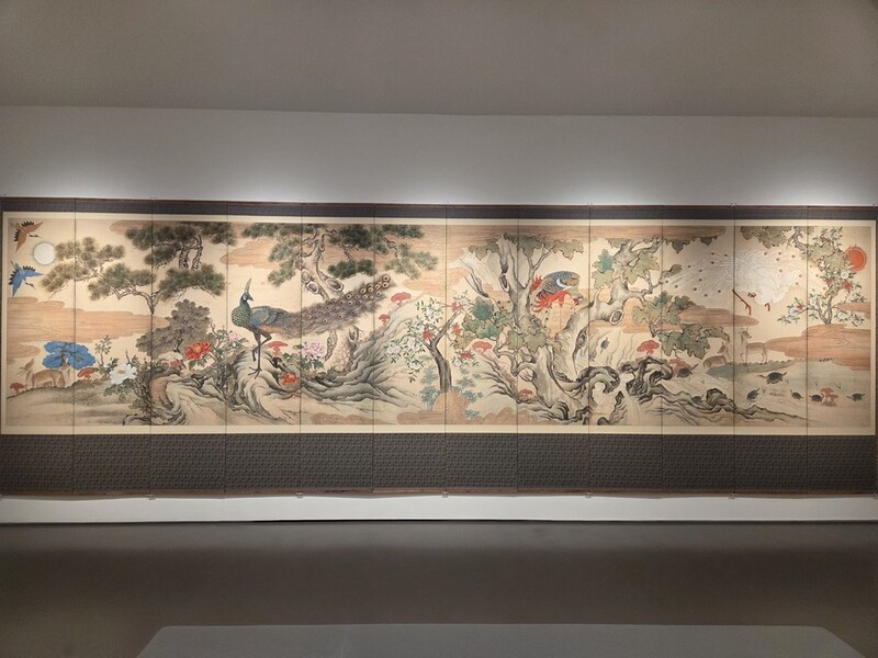 12폭 병풍으로 가로 713㎝, 세로 169㎝에 달하는 대형 작품 '봉화공작도'(鳳凰孔雀圖)는 궁중화가 민화에 접목된 것을 확인할 수 있는 작품이다. 전통적인 십장생 배경 위에 일제강점기 무렵 유행한 봉황공작도 도상이 결합했다. 민화 그림이지만 섬세한 궁중화 기법이 담겨 있다. 돈 많은 재력가가 궁중 화원에 의뢰해 그린 것으로 추정된다.