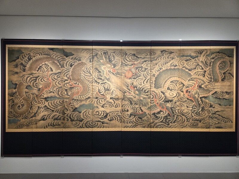 8폭 병풍에 담긴 궁중화 '쌍룡희주도'(雙龍戱珠圖)는 궁중화로는 드물게 용이 주인공인 작품이다. 두 마리의 용이 여의주를 가운데 두고 노는 모습을 담았다.