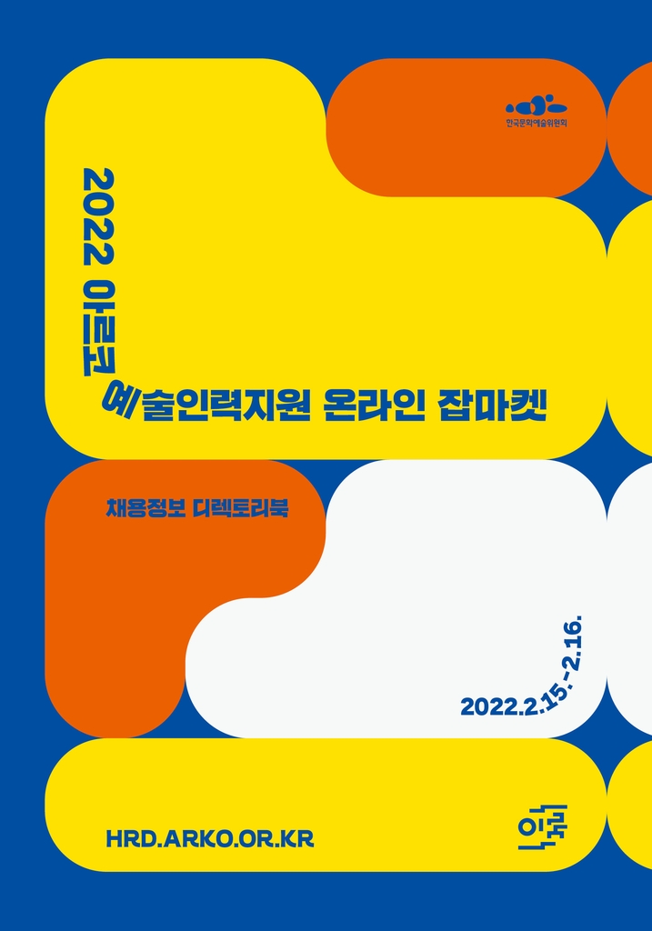 한국문화예술위원회는 오는 15∼16일 잡마켓 홈페이지(hrd.arko.or.kr)에서 '2022 아르코 예술인력지원 온라인 잡마켓'을 개최한다고 11일 밝혔다.