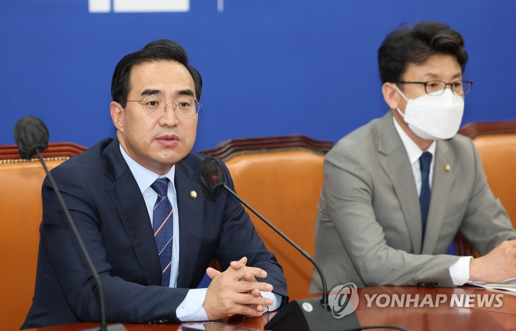 | ▲ Rep. Park Hong-geun, the floor leader of the main opposition Democratic Party, speaks at a press conference at the National Assembly in Seoul on June 30, 2022. (Pool photo) (Yonhap) |