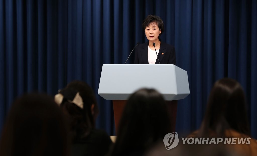 | ▲ Education Minister Park Soon-ae briefs reporters at the presidential office in Seoul on July 29, 2022, after giving a policy briefing to President Yoon Suk-yeol. (Yonhap) |
