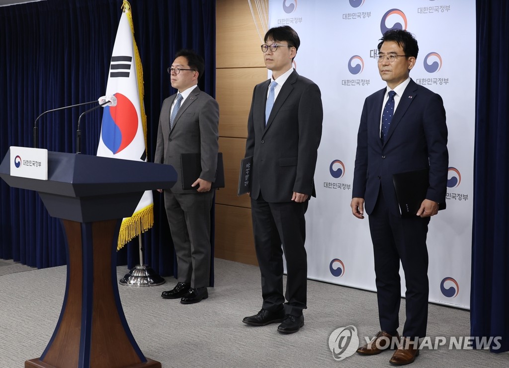 ▲ In this file photo taken June 8, 2023, police officials announce the results of a yearlong crackdown on home rental scams at the Seoul Government Complex in the capital city. (Yonhap)