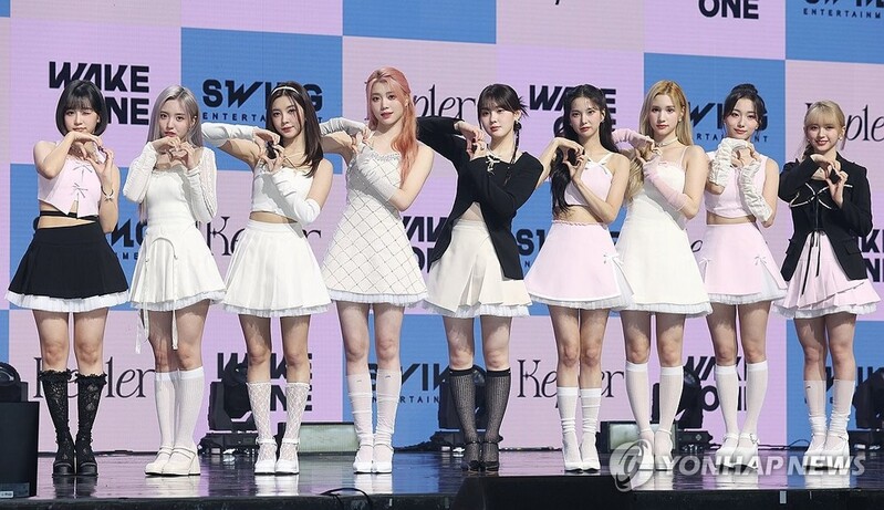 ▲ 케플러, 미니 5집 발매 (서울=연합뉴스) 이재희 기자 = 그룹 케플러가 25일 오후 서울 광진구 예스24라이브홀에서 열린 다섯 번째 미니앨범 '매직 아워' 발표회에 참석, 포즈를 취하고 있다. 2023.9.25 scape@yna.co.kr