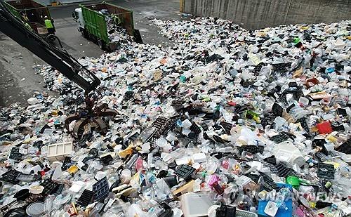 | ▲ This file photo shows recyclable waste under processing at a recycling center in Suwon, Gyeonggi Province. (Yonhap) |