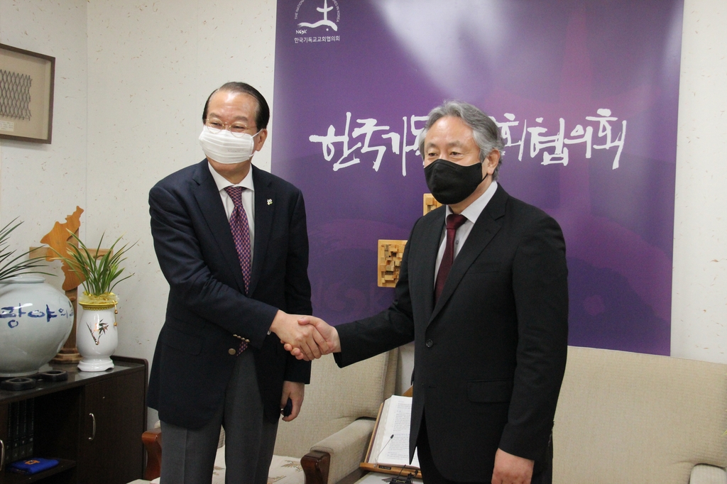 이날 권 장관의 NCCK 방문은 7대 종단 지도자 예방 계획에 따라 이뤄진 것이다. 그는 전날에는 천주교 광주대교구장 김희중 대주교와 만나 환담한 바 있다.