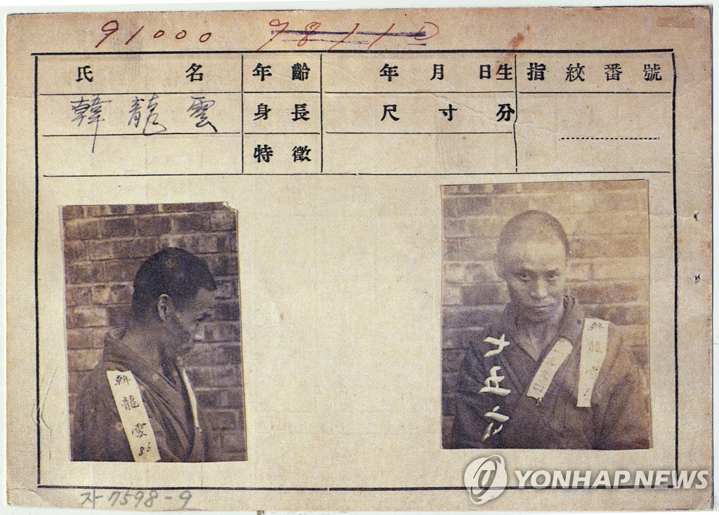 ▲ 만해 한용운 수형 기록표 [독립기념관 제공, 재판매 및 DB 금지]