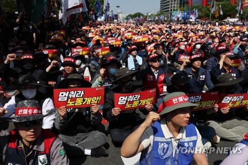 The Korean Confederation of Trade Unions (KCTU), the more militant of the two major umbrella unions, organized a rally, named "world Labor Day convention" in the central district of Jongno from 2 p.m. and declared its plan to stage a general strike in July.